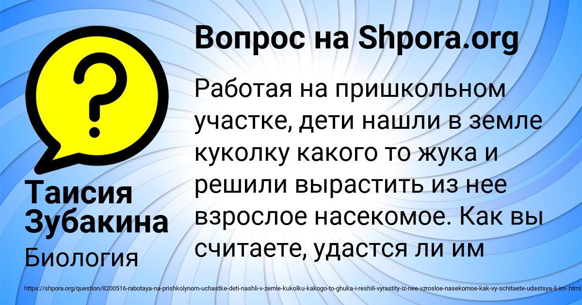 ⭐⭐⭐⭐⭐ Лучший ответ на вопрос «Работая на пришкольном участке, дети нашли в земле куколку какого то жука и решили вырастить из нее взрослое насекомое. Как вы считаете, удастся ли им » от пользователя Таисия Зубакина в разделе Биология. Задавайте вопросы и делитесь своими знаниями.