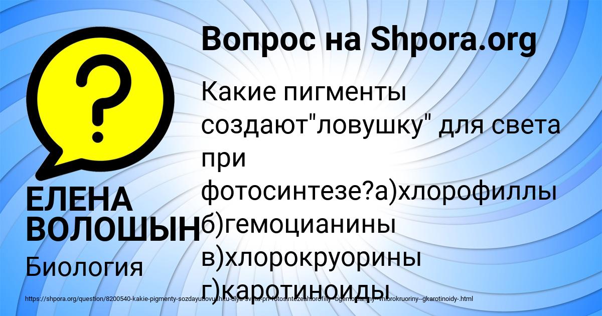 ⭐⭐⭐⭐⭐ Лучший ответ на вопрос «Какие пигменты создают"ловушку" для света при фотосинтезе?а)хлорофиллы б)гемоцианины в)хлорокруорины г)каротиноиды » от пользователя ЕЛЕНА ВОЛОШЫН в разделе Биология. Задавайте вопросы и делитесь своими знаниями.