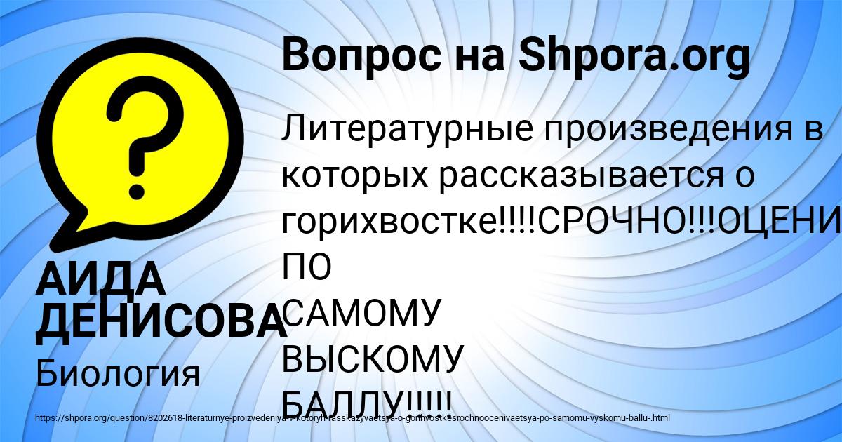⭐⭐⭐⭐⭐ Лучший ответ на вопрос «Литературные произведения в которых рассказывается о горихвостке!!!!СРОЧНО!!!ОЦЕНИВАЕТСЯ ПО САМОМУ ВЫСКОМУ БАЛЛУ!!!!! » от пользователя АИДА ДЕНИСОВА в разделе Биология. Задавайте вопросы и делитесь своими знаниями.