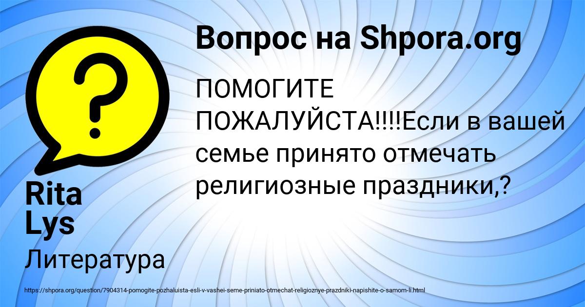 ⭐⭐⭐⭐⭐ Лучший ответ на вопрос «ПОМОГИТЕ ПОЖАЛУЙСТА!!!!Если в вашей семье принято отмечать религиозные праздники,?» от пользователя Rita Lys в разделе Литература. Задавайте вопросы и делитесь своими знаниями.