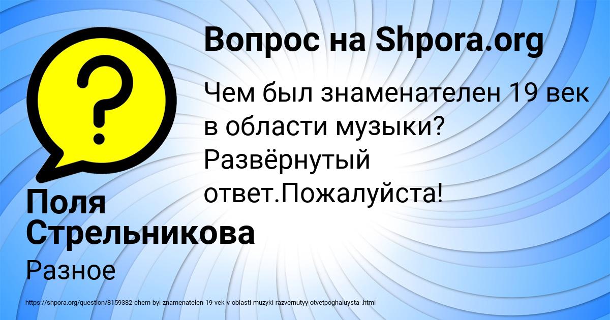 ⭐⭐⭐⭐⭐ Лучший ответ на вопрос «Чем был знаменателен 19 век в области музыки? Развёрнутый ответ.Пожалуйста! » от пользователя Поля Стрельникова в разделе Разное. Задавайте вопросы и делитесь своими знаниями.