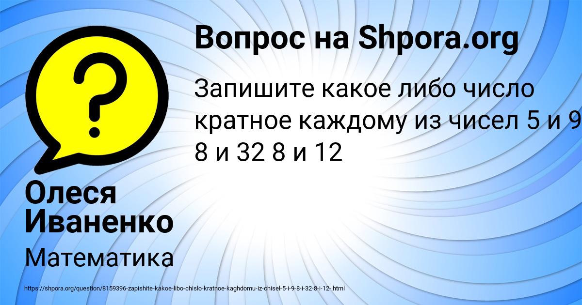 ⭐⭐⭐⭐⭐ Лучший ответ на вопрос «Запишите какое либо число кратное каждому из чисел 5 и 9 8 и 32 8 и 12 » от пользователя Олеся Иваненко в разделе Математика. Задавайте вопросы и делитесь своими знаниями.