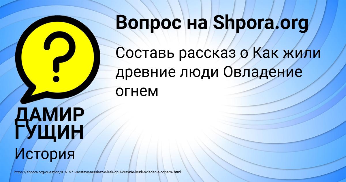 ⭐⭐⭐⭐⭐ Лучший ответ на вопрос «Составь рассказ о Как жили древние люди Овладение огнем » от пользователя ДАМИР ГУЩИН в разделе История. Задавайте вопросы и делитесь своими знаниями.