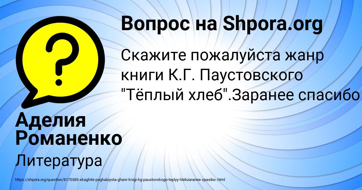 ⭐⭐⭐⭐⭐ Лучший ответ на вопрос «Скажите пожалуйста жанр книги К.Г. Паустовского "Тёплый хлеб".Заранее спасибо » от пользователя Аделия Романенко в разделе Литература. Задавайте вопросы и делитесь своими знаниями.
