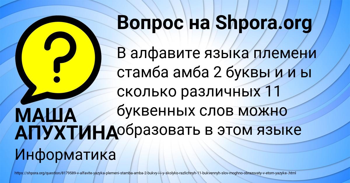 ⭐⭐⭐⭐⭐ Лучший ответ на вопрос «В алфавите языка племени стамба амба 2 буквы и и ы сколько различных 11 буквенных слов можно образовать в этом языке » от пользователя МАША АПУХТИНА в разделе Информатика. Задавайте вопросы и делитесь своими знаниями.
