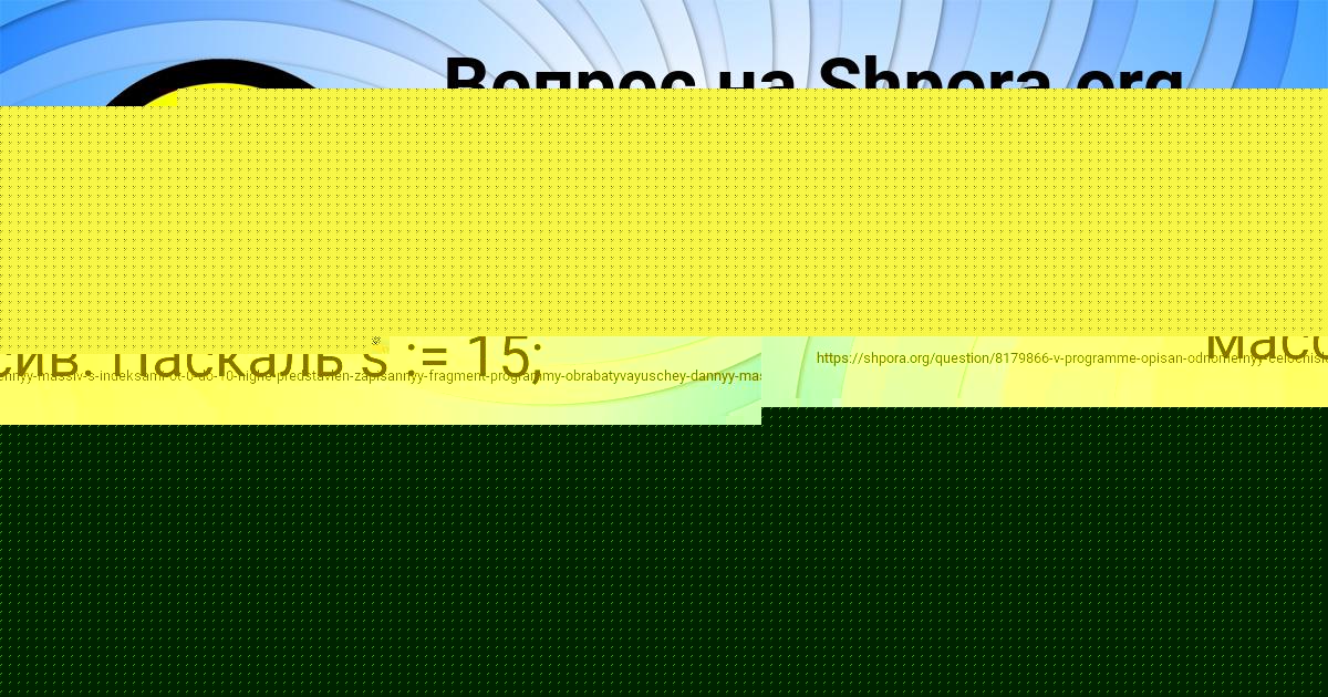 ⭐⭐⭐⭐⭐ Лучший ответ на вопрос «В программе описан одномерный целочисленный массив с индексами от 0 до 10. Ниже представлен записанный фрагмент программы, обрабатывающей данный массив: Паскаль s := 15; » от пользователя Люда Ященко в разделе Информатика. Задавайте вопросы и делитесь своими знаниями.