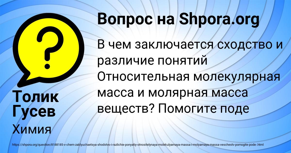 ⭐⭐⭐⭐⭐ Лучший ответ на вопрос «В чем заключается сходство и различие понятий Относительная молекулярная масса и молярная масса веществ? Помогите поде » от пользователя Толик Гусев в разделе Химия. Задавайте вопросы и делитесь своими знаниями.